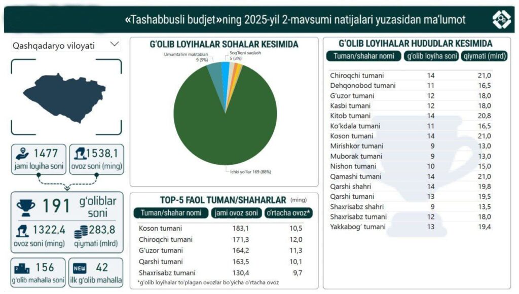 “Таshаbbusli budjet”ning 2025-yil 2-mavsumi natijalari uyzasidan Qashqadaryo viloyati boʻyicha