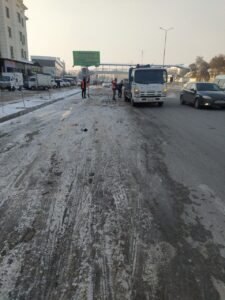 Қашқадарё йўллардан мунтазам фойдаланиш унитар корхонаси томонидан 4Р-91ж «Хонобод кўчаси» пиёдалар йўлакчасига туз қум сепиш ишлари бажарилмоқда.
